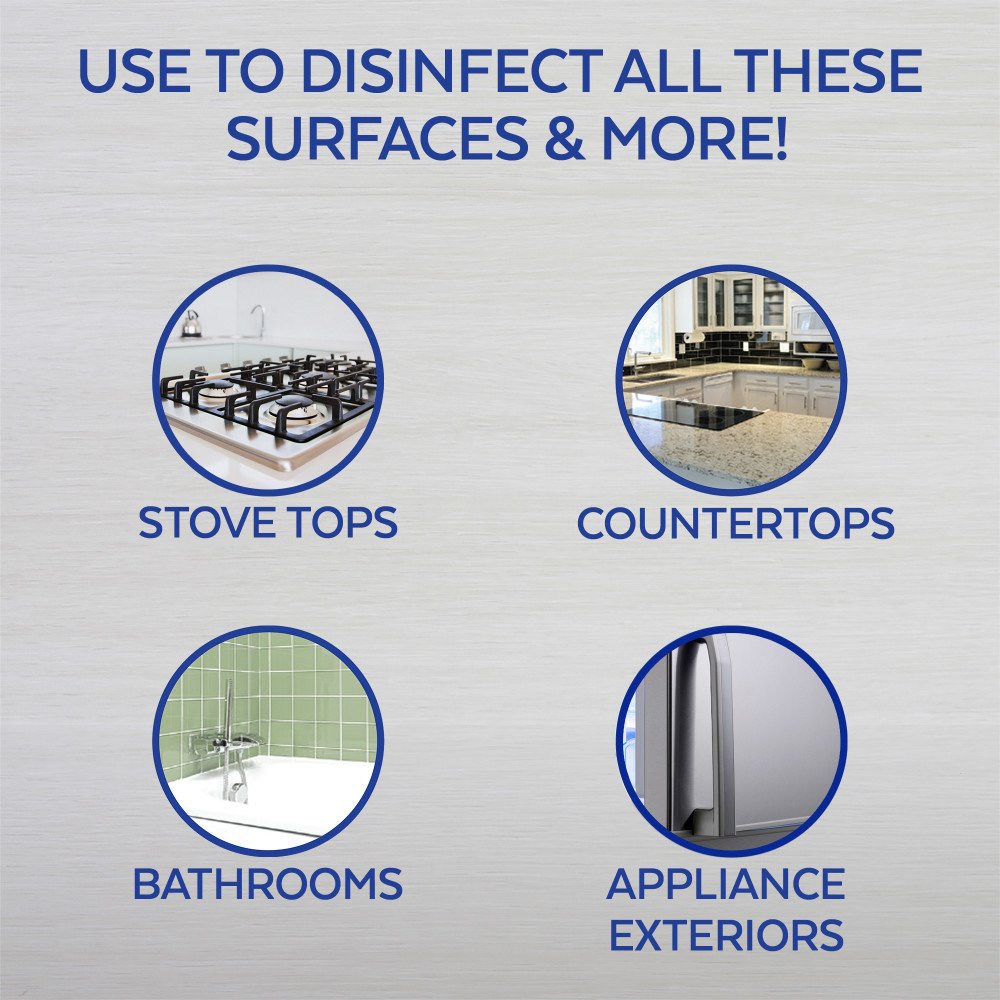- Lemon scented spray cleans and disinfects walls, painted woodwork, garbage cans, cabinets, floors, and other hard, nonporous surfaces
