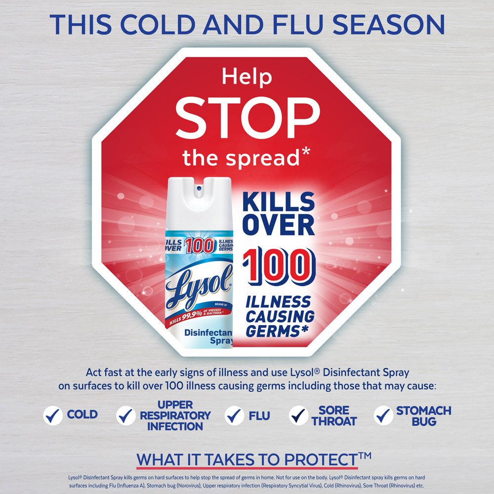 - ANTIBACTERIAL BLEACH-FREE DISINFECTANT : this Lysol disinfecting product should work as hard as you do; this household disinfectant kills over 100 illness causing germs, including cold and flu viruses.** (**when used as directed).