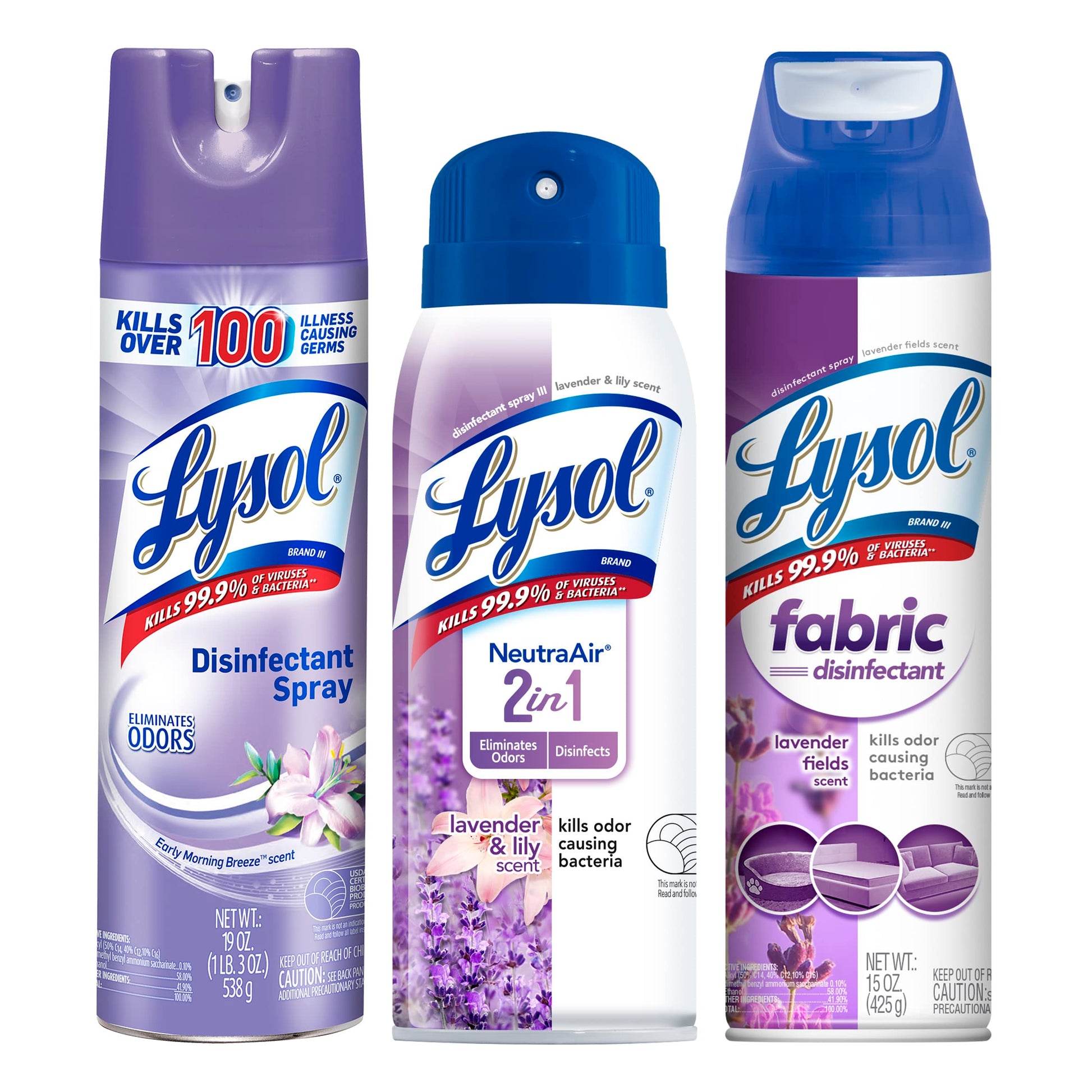 Lysol Disinfecting Spray, Early Morning Breeze 19oz Neutraair 2 in 1 Air Freshener and Disinfectant Spray, Lavender & Lily 10oz Fabric Disinfectant Spray, Lavender Fields 15oz