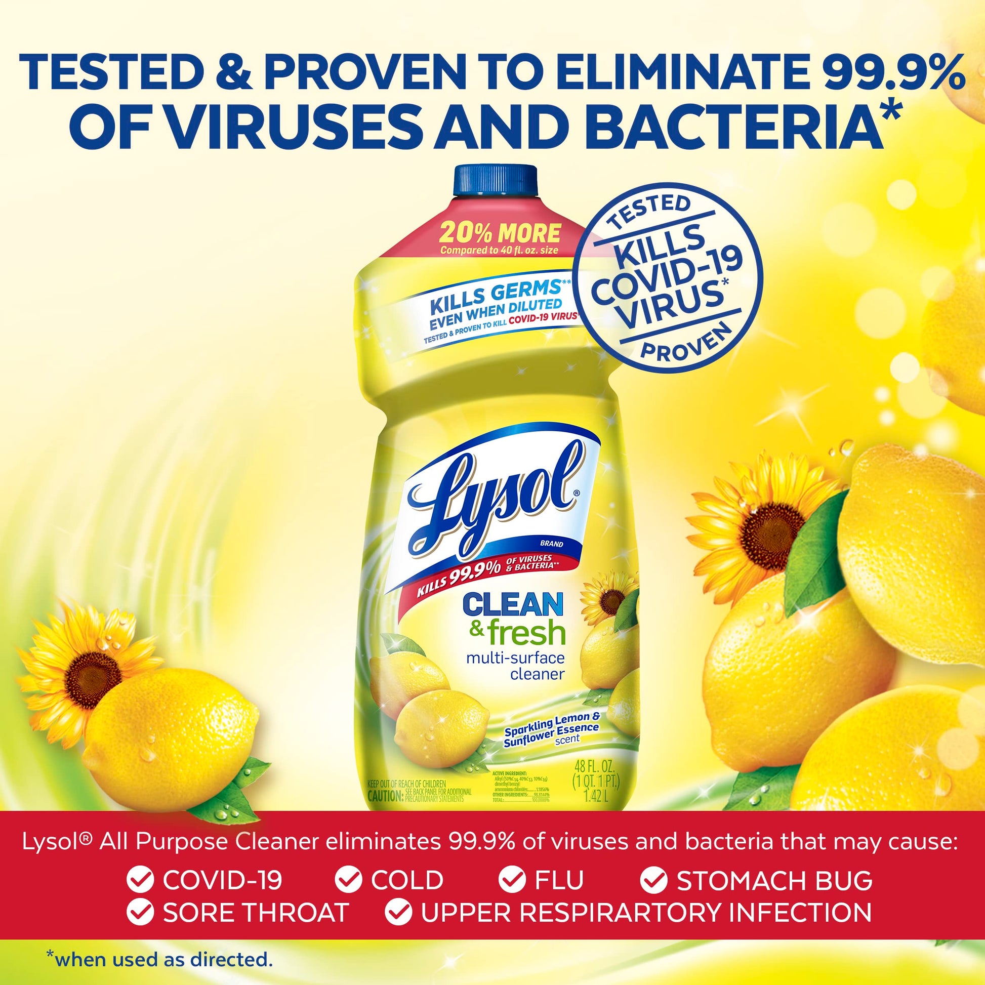 - MULTI SURFACE CLEANER KILLS 99.9% OF VIRUSES & BACTERIA: Lysol Multi-Surface Cleaner eliminates viruses and bacteria including COVID-19 Virus* (*Kills SARS-CoV-2 on hard, non-porous surfaces in 3 minutes), EPA Reg #777-89.